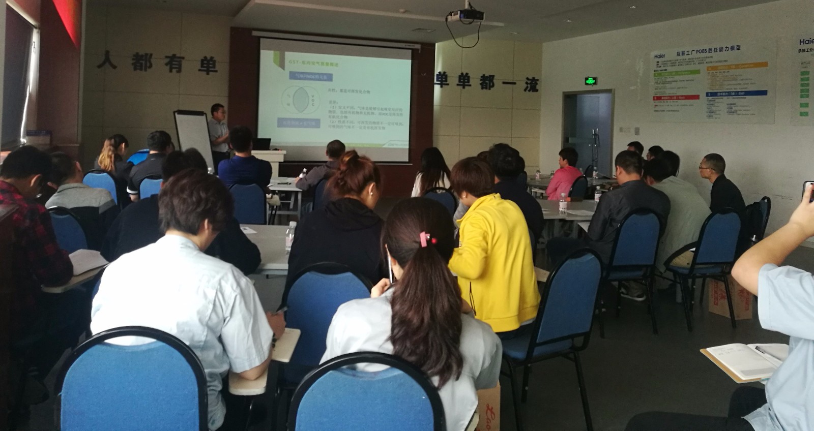 2018年5月16日,上汽通用五菱汽车股份有限公司授权我司在山东青岛胶州市海尔工业园内对供应商气味测试人员开展为期3天的第一期VIAQ气味培训。