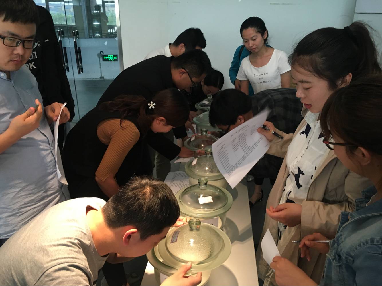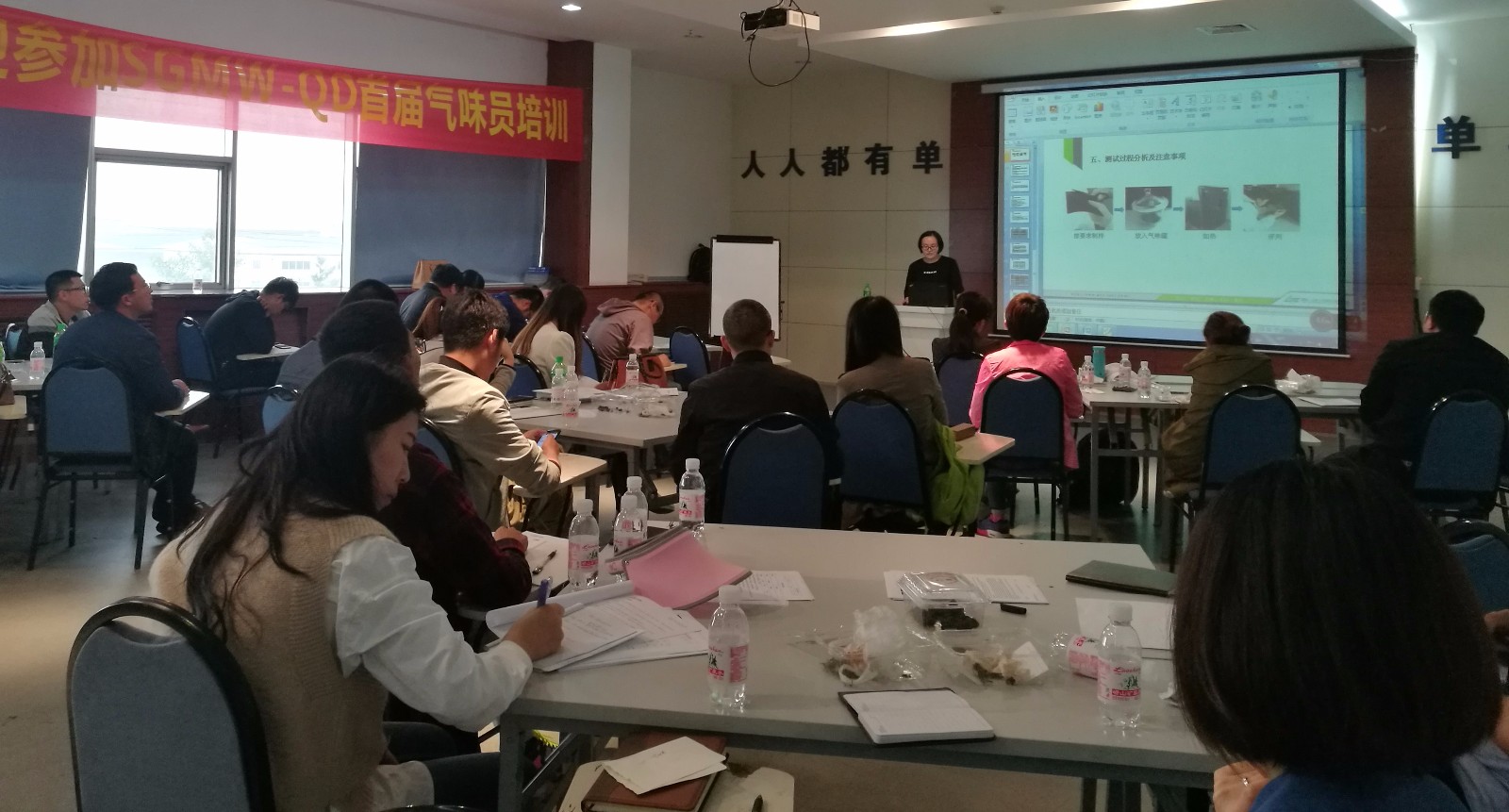 参加此次培训的学员共分2个班,每班30人左右,培训的主要内容分为以下几大板块:气味的概念、主机厂气味标准异同分析、SGMW气味试验方法解读、气味溯源及通用气味测试分析、样品如何拆解制样、测试过程分析及注意事项、原始数据的记录及评价、气味人员资格评定(气味类型和气味强度联方面)、不同材质样品现场试验(织物、塑料、油漆等)。